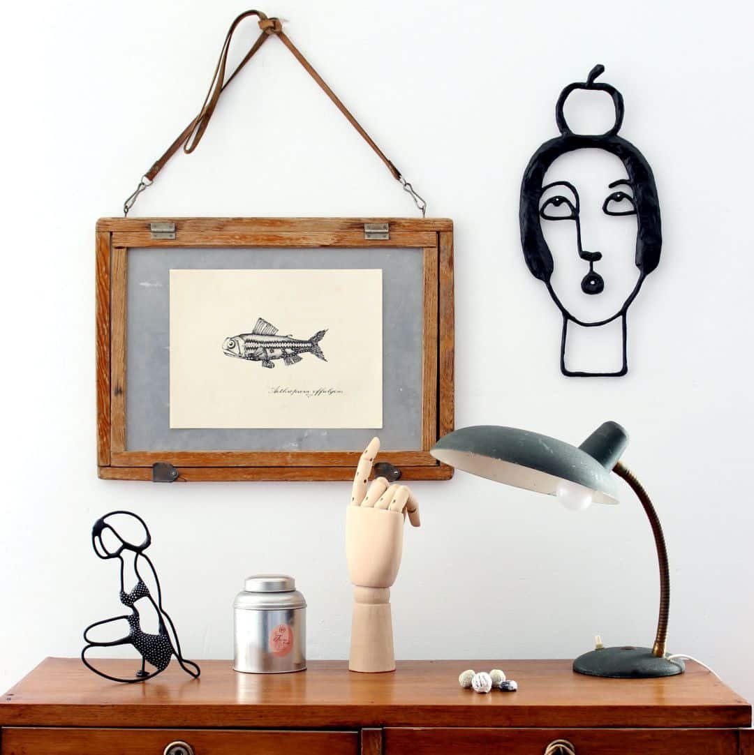 Natürlich musste sie mir beim Fotografieren runterfallen, da ich nicht jedes Mal fürs Aufhängen neue Nägel in die Wand schlagen kann, sondern für die kurzfristige Lösung auf Patafix zurückgreife. Das haftet bei mehrmaligem Versetzen irgendwann eben nicht mehr optimal… Zum Glück sind die Skulpturen solide, und die kleinen Risse im Verputz und Farbe waren schnell ausgebessert. Aber irgendwas ist ja immer…