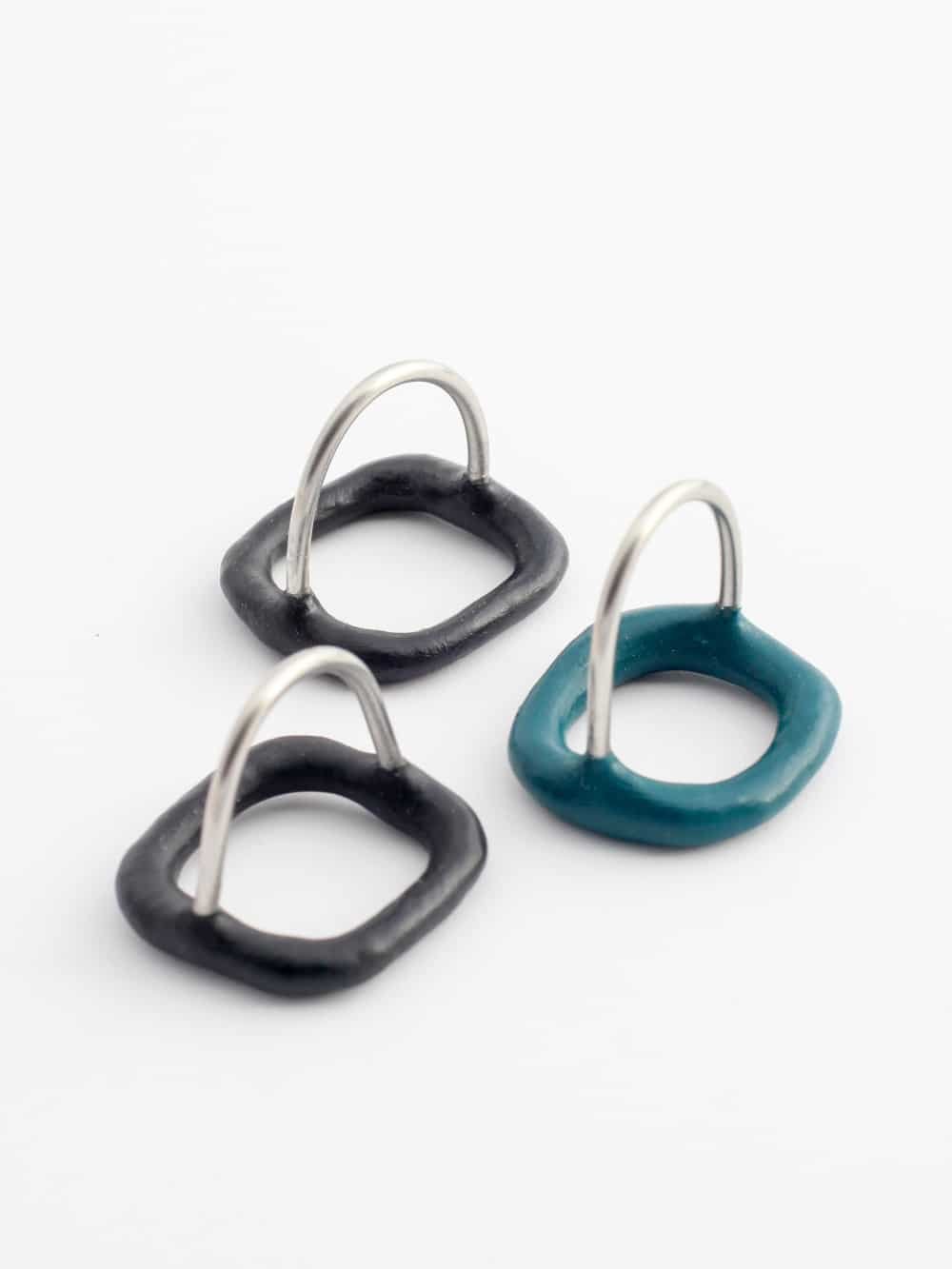 Chaque bague est réalisée dans mon atelier selon un processus minutieux s’étalant sur plusieurs jours, ponctué de temps de séchage, pour garantir solidité et esthétique. De petites irrégularités issues du façonnage à la main font tout leur charme : ainsi, chaque pièce est unique et ne sera jamais reproduite à l’identique.
