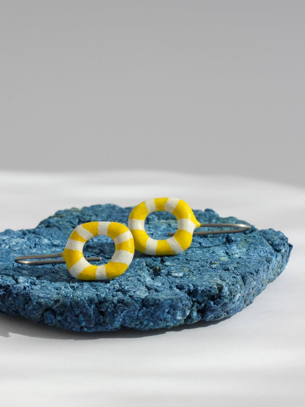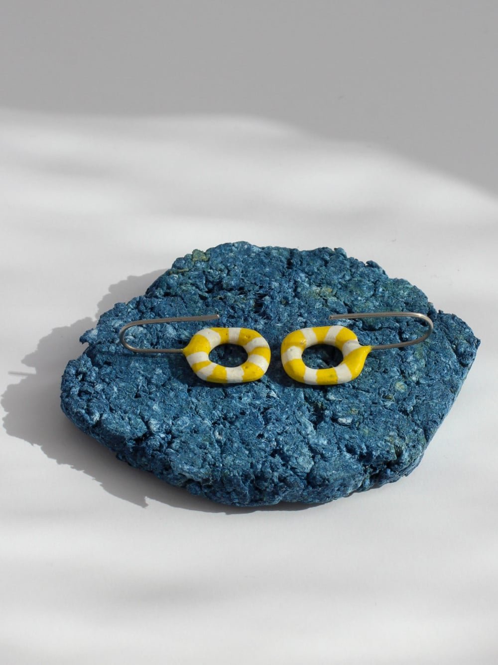 Chaque paire de boucles d’oreilles est réalisée dans mon atelier selon un processus minutieux s’étalant sur plusieurs jours, ponctué de temps de séchage, pour garantir solidité et esthétique. De petites irrégularités issues du façonnage à la main font tout leur charme : ainsi, chaque pièce est unique et ne sera jamais reproduite à l’identique.