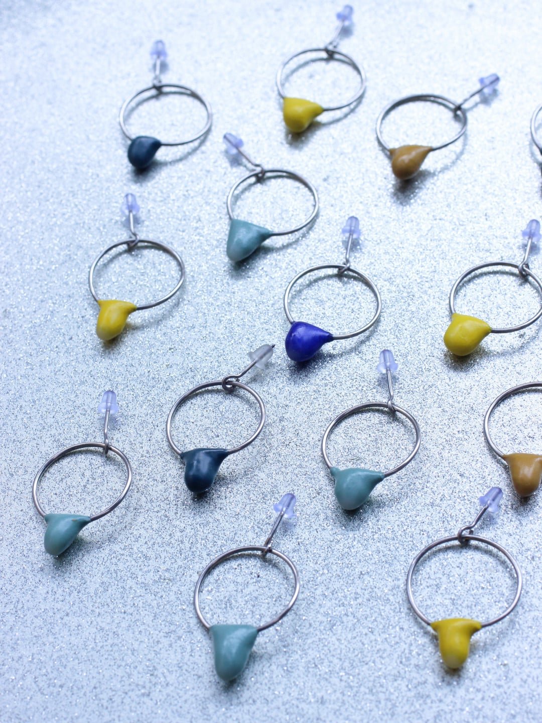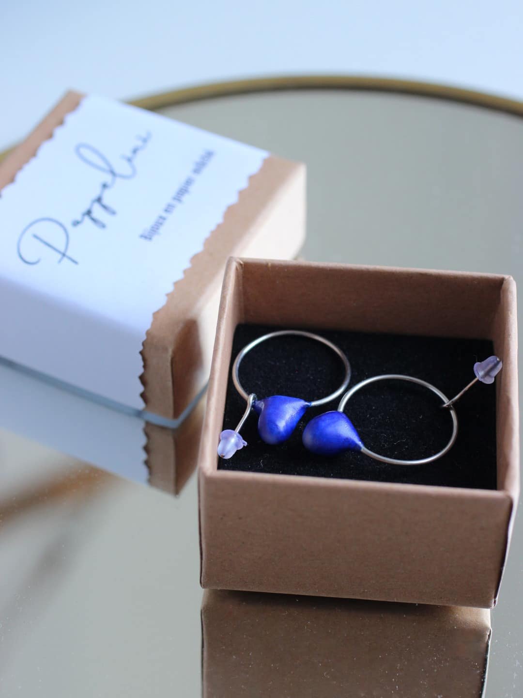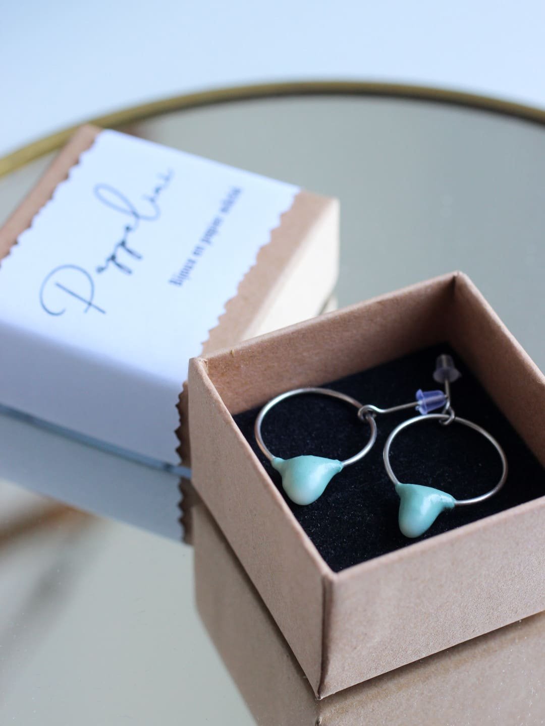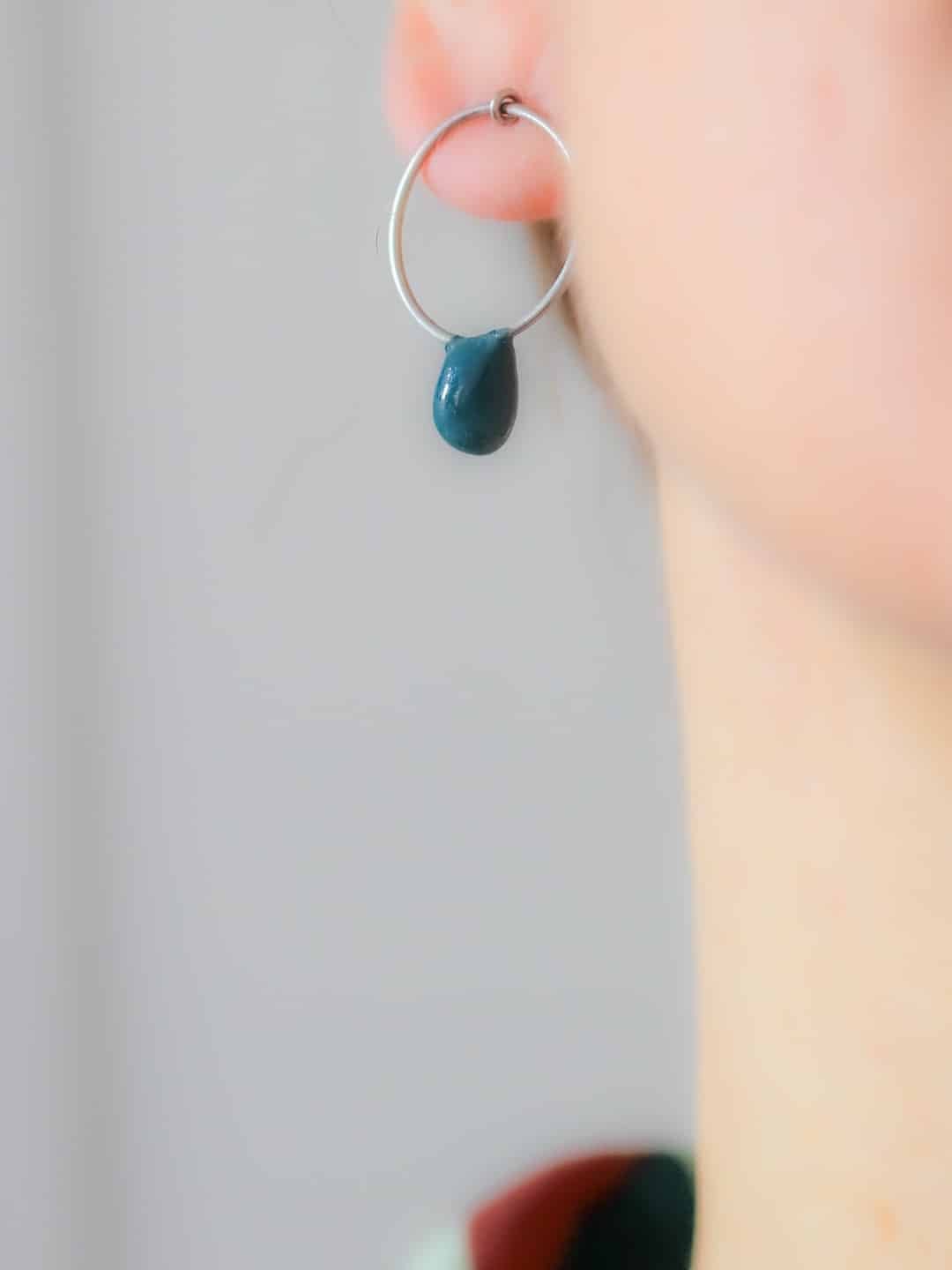 Chaque paire de boucles d’oreilles est réalisée dans mon atelier selon un processus minutieux s’étalant sur plusieurs jours, ponctué de temps de séchage, pour garantir solidité et esthétique. De petites irrégularités issues du façonnage à la main font tout leur charme : ainsi, chaque pièce est unique et ne sera jamais reproduite à l’identique.
