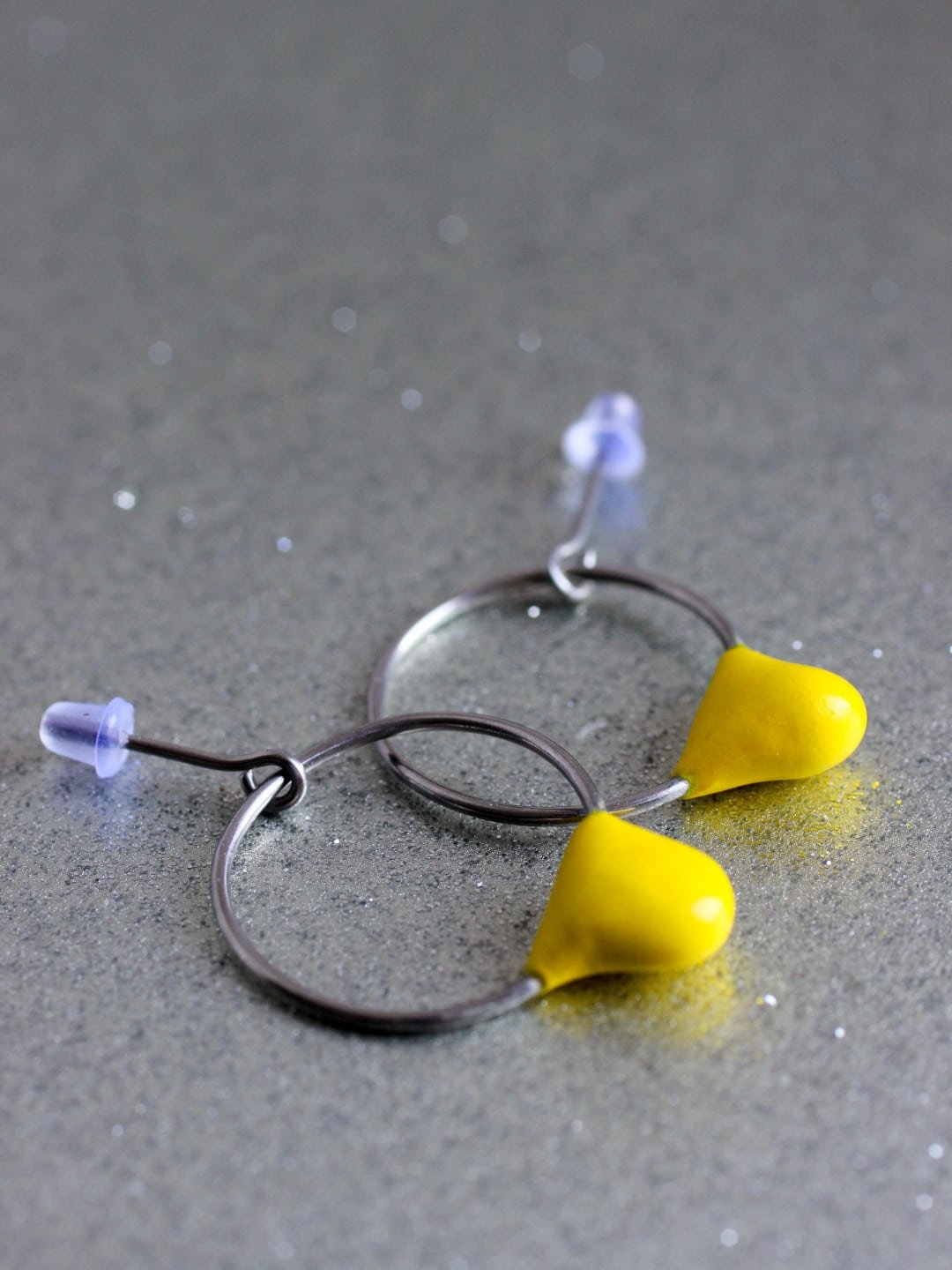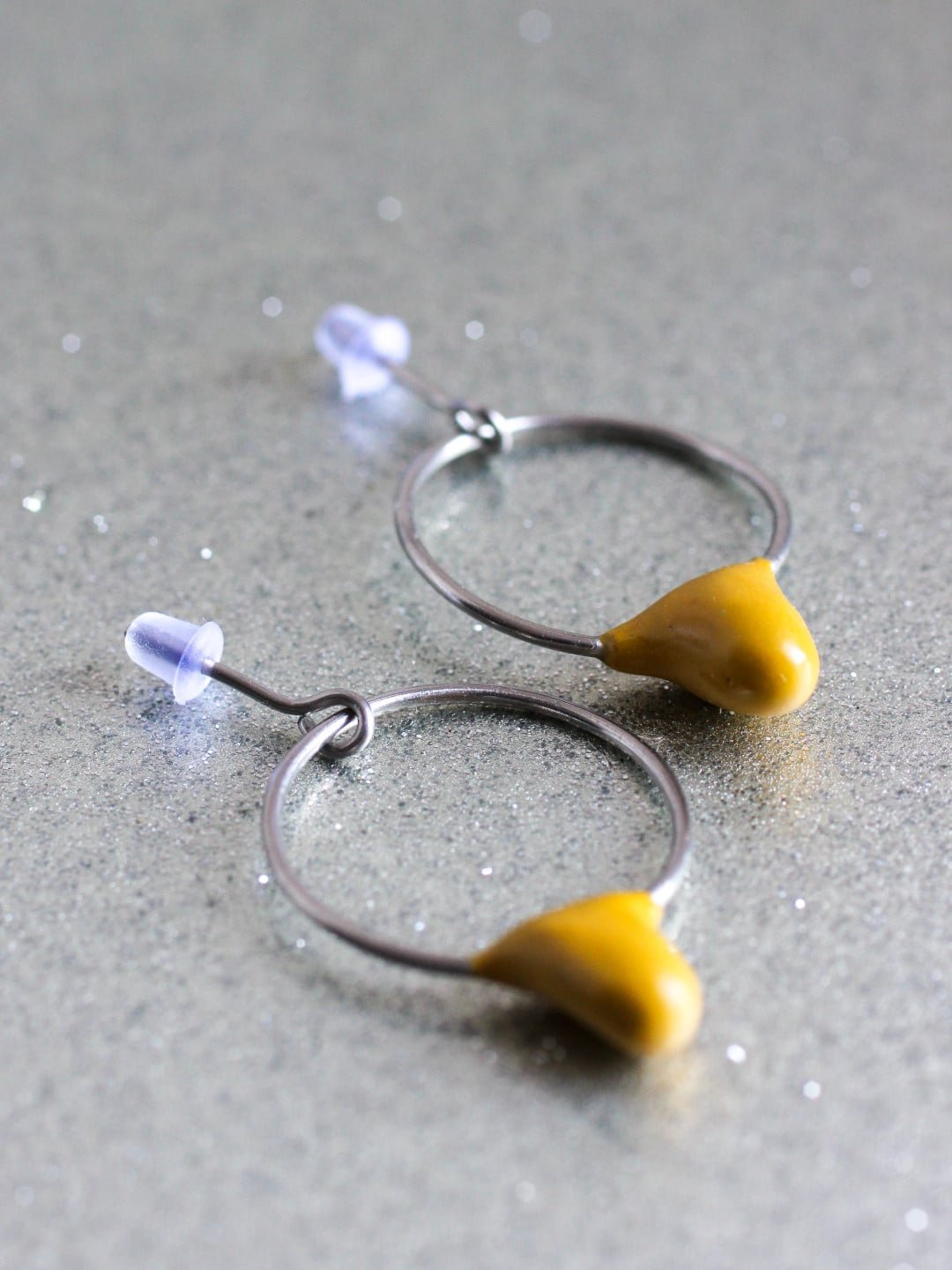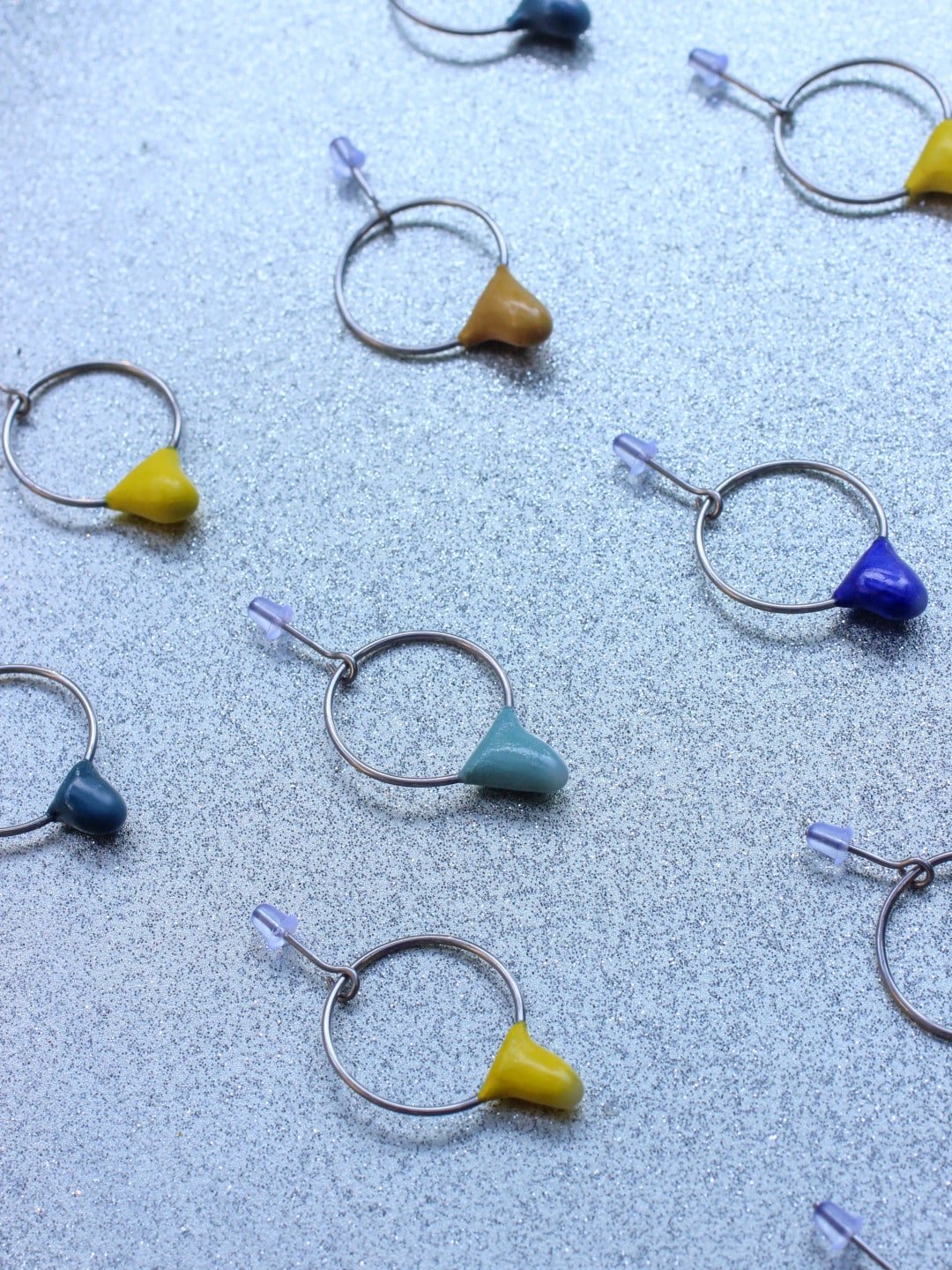 Ajoute une touche fraîche et joyeuse à ton look avec les boucles d’oreilles Gouttelette. Leurs petites gouttes colorées associées à un mini cercle en acier créent un bijou à la fois discret, ludique et lumineux. Chaque paire est peinte dans une seule couleur, pour un accent contemporain facile à porter au quotidien. Les formes restent simples et un brin naïves, comme de petites gouttes de couleur suspendues au bout de l’oreille. Légères comme une feuille de papier, elles se font vite oublier une fois portées, tout en attirant subtilement la lumière.